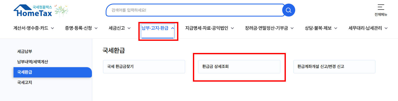 - 홈택스 접속 → [My홈택스] → [환급금 조회]