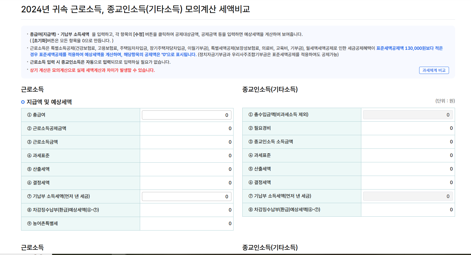 - 항목 입력하면 자동으로 산출 세액 계산 완료