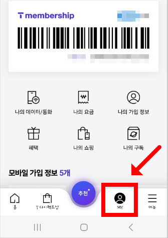 ✔ 하단 메뉴에서 ‘my’ → ‘부가서비스 관리’ 클릭